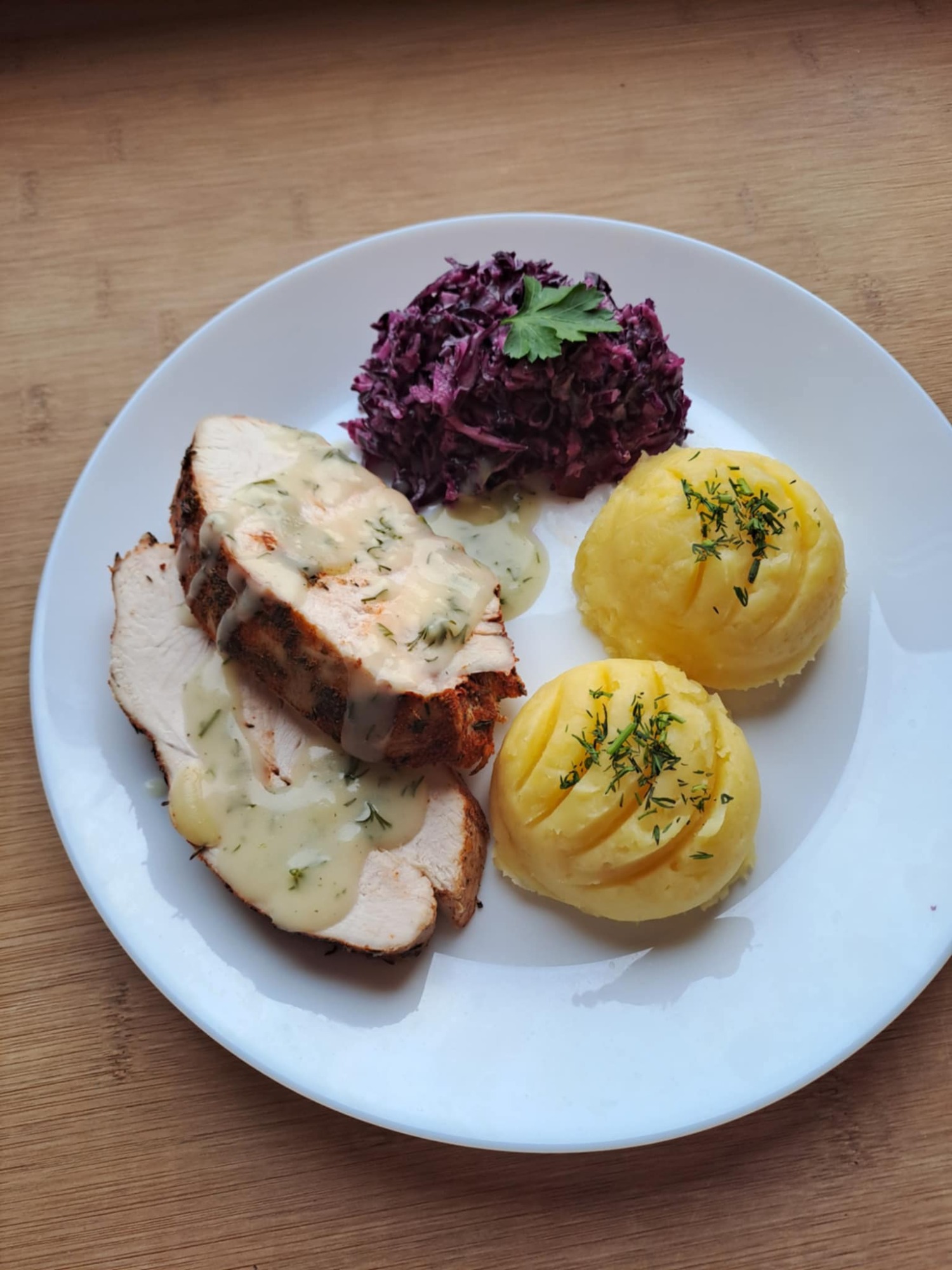 Grilowany filet z kurczaka, ziemniaki , surówka